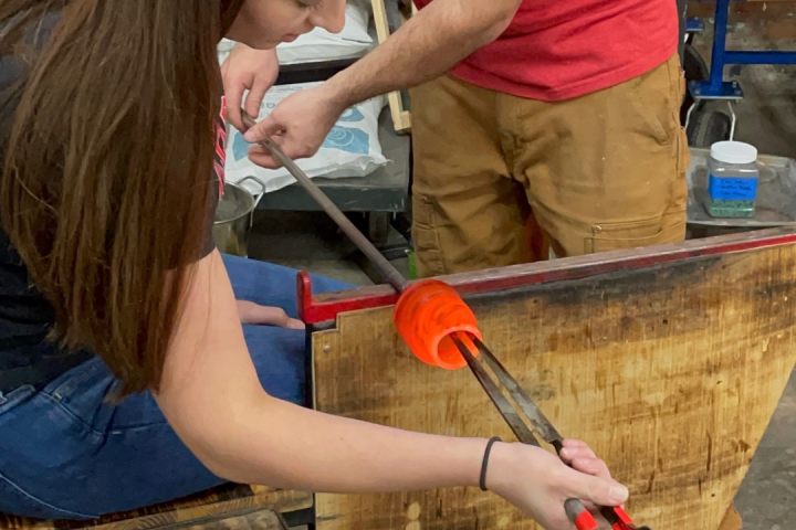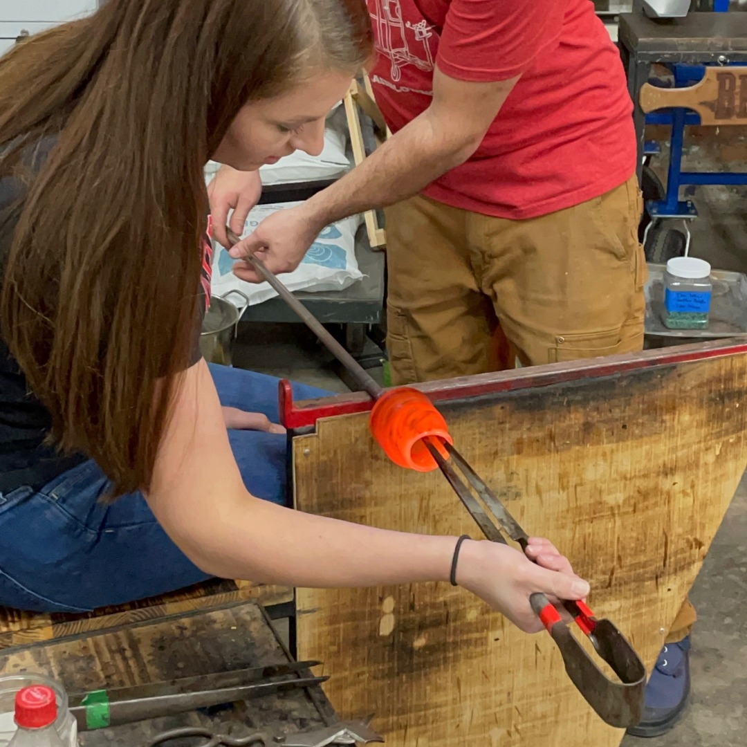 – Learn fundamentals: equipment, tools, safety, and first gather of glass
